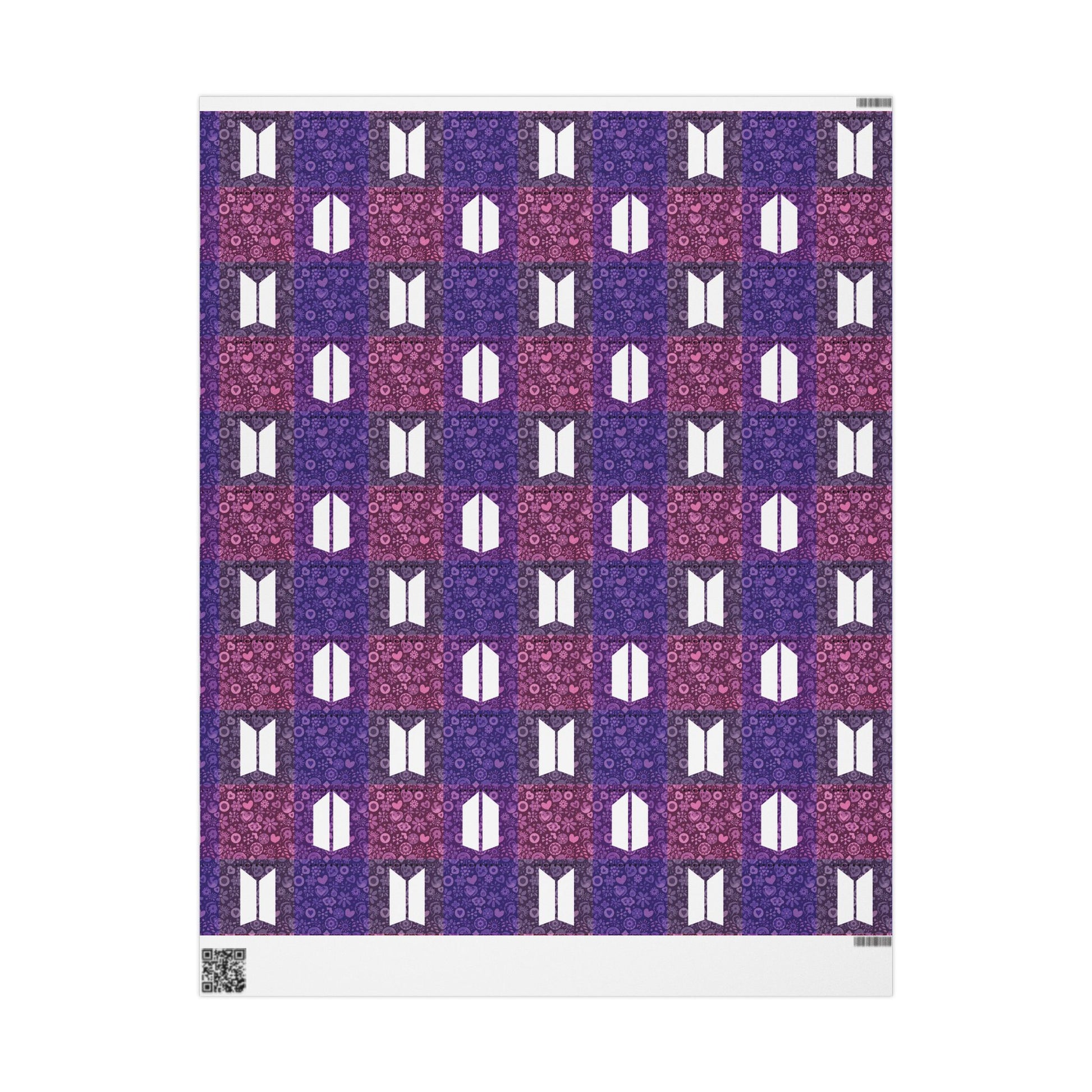 Celebrate both BTS and Army with this quilt work design of abstract images, in various hues of purpled, crowned by both the BTS and Army logos. This design offers a blend of both the subtle and the distinct, making it fitting for several celebratory occasions. A roll of high-definition printed wrapping paper that turns ordinary gifts into thoughtful, design-forward moments for BTS Army. It presents well with hand-tied ribbon, kraft tags, or a simple twine loop. Use it for holiday giving, birthday bundles, or to upgrade packaging when you want the recipient to feel seen before they even open the parcel. This all-occasion gift wrapping paper is also a great touch to any gift that celebrates milestones of an Army, including graduations, births, weddings, and promotions.