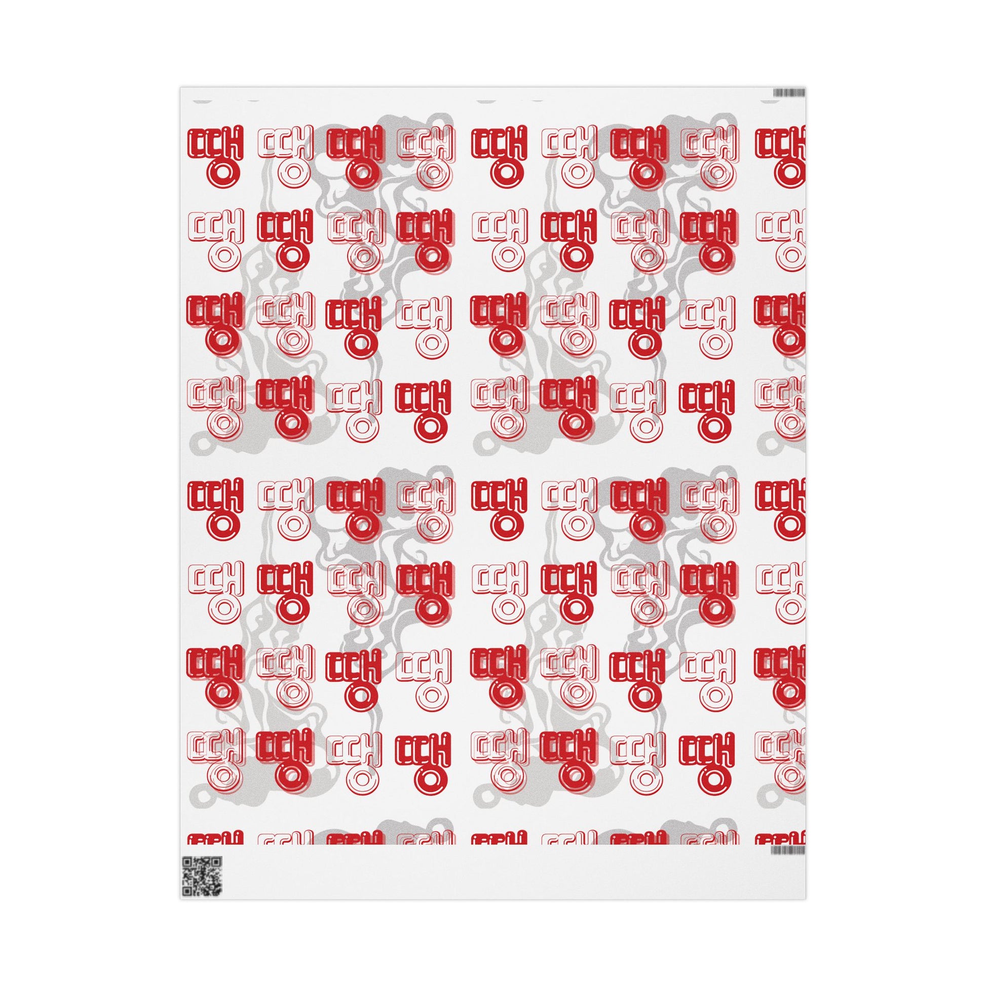 Wrapping Paper Roll (All-Occasions): BTS Rapline "Ddaeng" Inspired, Red Typographic Pattern, Grey Smoke Background
